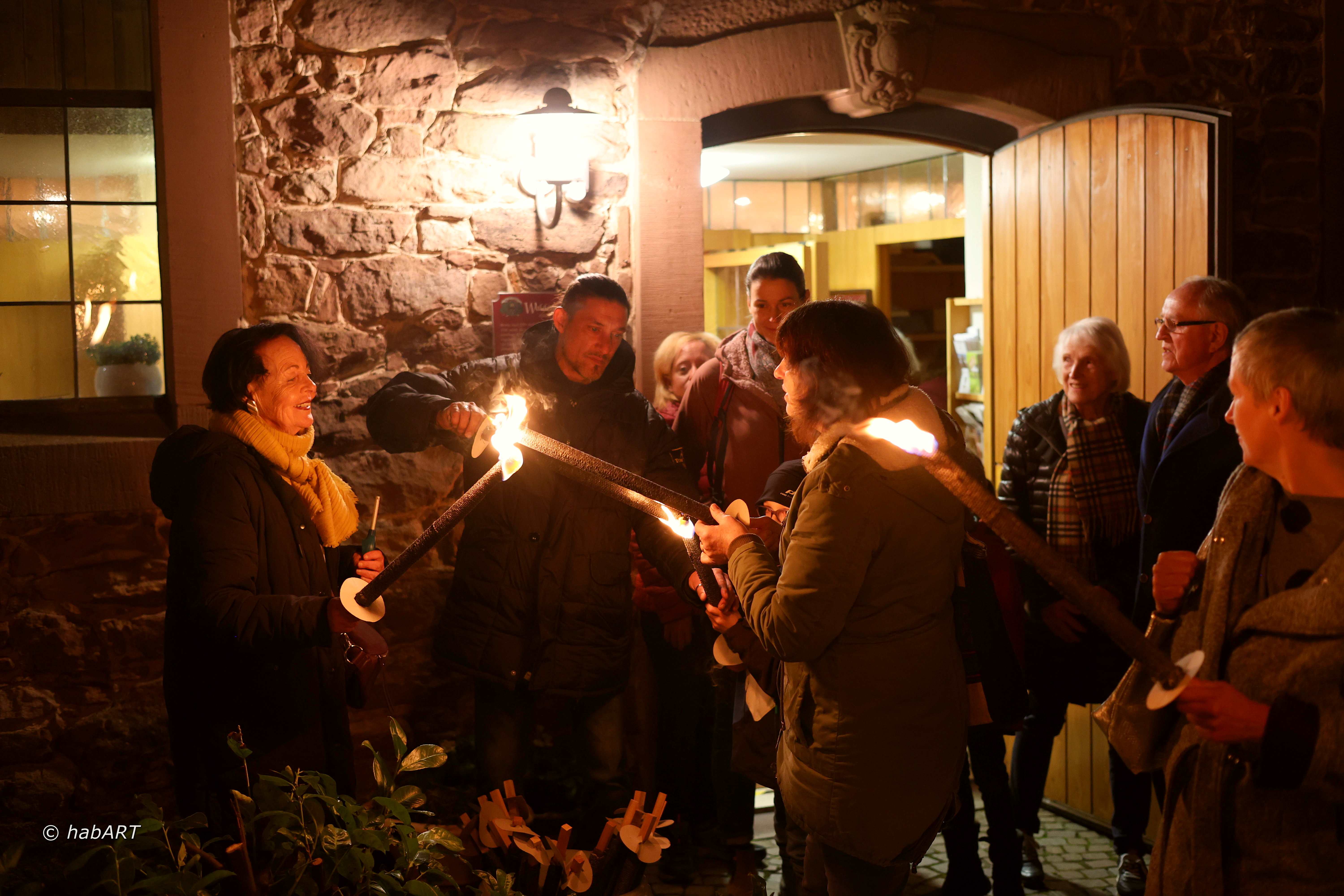 Danach ziehen die Gäste gemeinsam in einem Fackelzug zum MuseumsEnsemble (Waldenserstraße 47). Dort genießt man gemeinsam die Wärme des Feuers mit Glühwein, Punsch und kleinen Speisen.